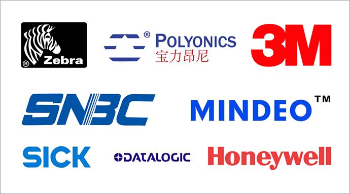 我們的合作伙伴:斑馬、霍尼韋爾、得利捷、民德、新北洋、西克、寶力昂尼、3M、艾利等