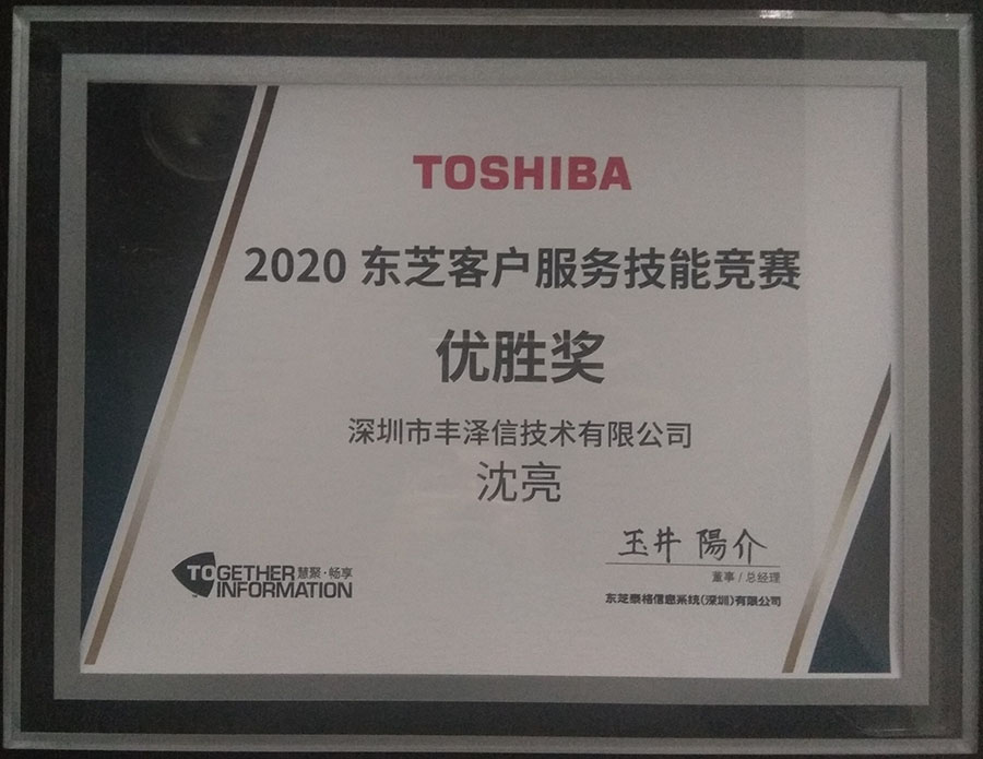 TOSHIBA東芝客戶服務技能竟賽優勝獎