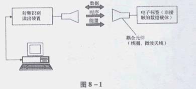 射頻識別系統的基本模型如圖8—1所示。其中,電子標簽又稱為射頻標簽、應答器、數據載體;閱讀器又稱為讀出裝置,掃描器、通訊器、讀寫器(取決于電子標簽是否可以無線改寫數據)。電子標簽與閱讀器之間通過耦合元件實現射頻信號的空間(無接觸)耦合、在耦合通道內,根據時序關系,實現能量的傳遞、數據的交換。 發生在閱讀器和電子標簽之間的射頻信號的耦合類型有兩種。 (1)電感耦合。變壓器模型,通過空間高頻交變磁場實現耦合,依據的是電磁感應定律,如圖所示。