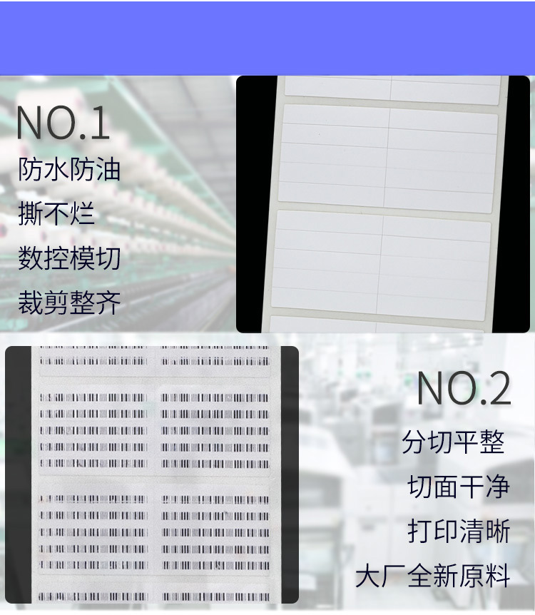 耐高溫條碼標(biāo)簽可按客戶要求生產(chǎn)。按厚度分有25番(1番=1um)、50番、75番等規(guī)格,這與廠家的實(shí)際要求有關(guān)。由于PET優(yōu)良的介質(zhì)性能,具有良好的防污、防刮、耐高溫等性能,它被廣泛應(yīng)用于多種特殊場合,如在高溫條件下生產(chǎn)的電子產(chǎn)品、手機(jī)電池、電腦顯示器、空調(diào)壓縮機(jī)等。需要使用碳帶,熱轉(zhuǎn)印方式打印,打印質(zhì)量較高。