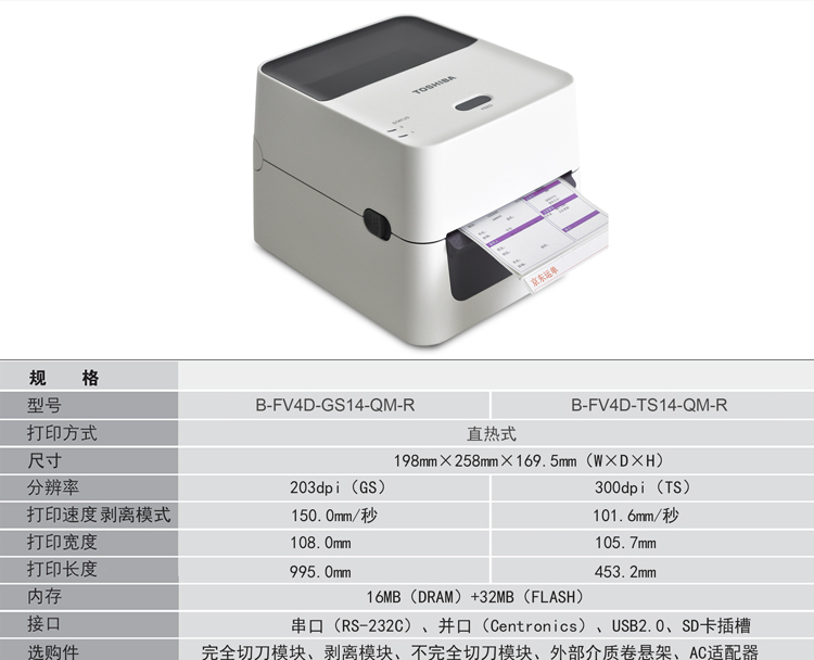 東芝B-FV4D-TS14-CN-R快遞物流零售電子商務熱敏票據收據打印機