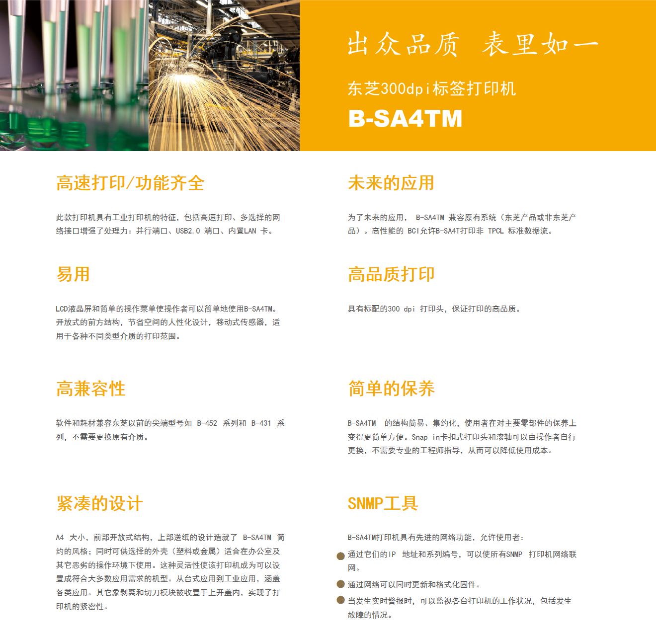 機器外形小巧、簡單易用,卻具有工業打印機功能完整、牢固耐用的特點。先進的網絡功能,可支持現今主流的通訊端口,使用戶可以通過網絡對打印機進行遠程管理。人性化設計適用于安靜的辦公環境,高質量的打印輸出和出色的功能保證,又同樣適用于重工業環境。在打印應用方面,真正地提供了“解決方案”,成為全球公認的品牌。廣泛的應用領域:制造業、汽車業、化學工業、制藥工業、紡織工業、電子工業、電信業、食品部門、零售分銷業