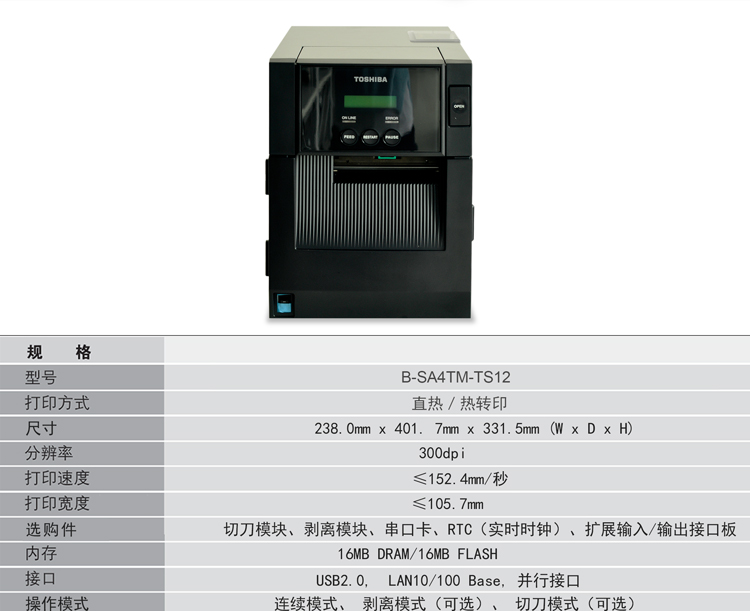 | 可選件 | 切刀模塊、剝離模塊、串行接口板、RFID 模塊、擴展輸入/輸出接口板、實時時鐘 | |