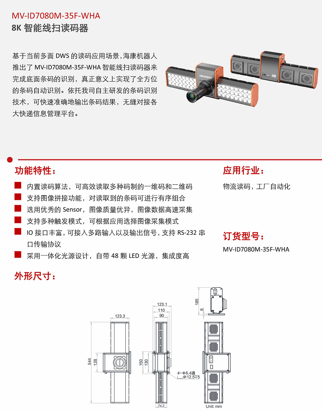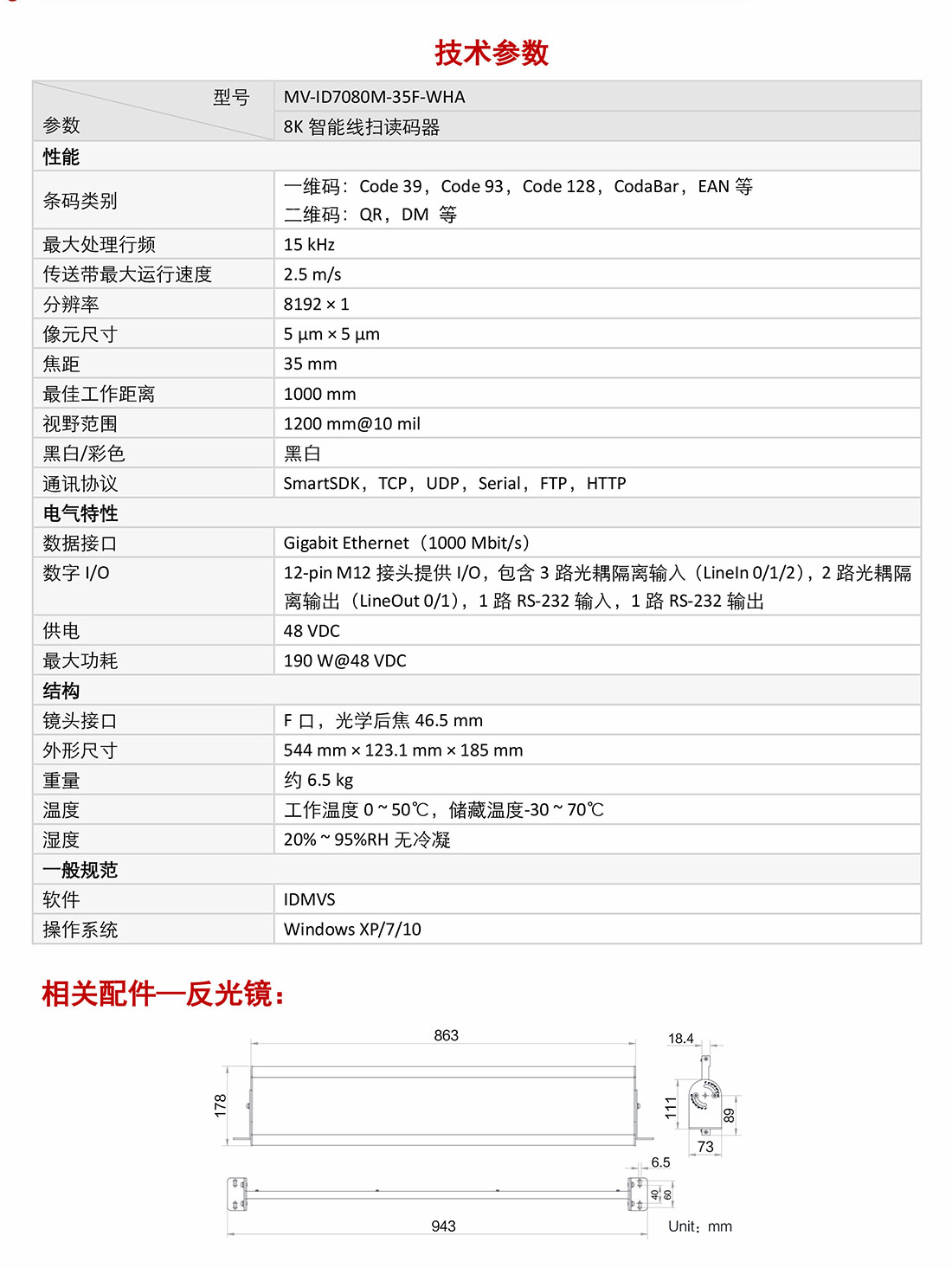 MV-ID7080M-35F-WHA智能線掃讀碼器
